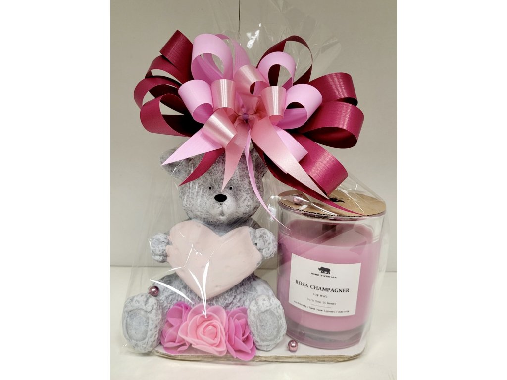 Dárkový balíček, který provoní každou chvíli! Dvě voňavé svíčky v jednom setu – romantický medvídek se srdcem a elegantní svíčka Rosa Champagner. Ideální dárek pro všechny, kdo milují jemné vůně a sladkou atmosféru. 🕯️🐻💖