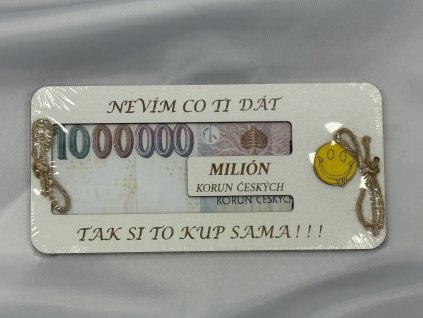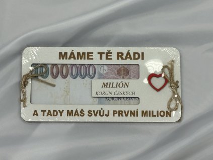 Originální dřevěná obálka na peníze s nápisem „Máme tě rádi a tady máš svůj první milion“.Vtipný dárek pro radost, který zaručeně potěší a vykouzlí úsměv. 💰😊