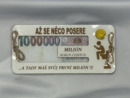Vtipná dřevěná obálka na peníze s textem „Až se něco posere… a tady máš svůj první milión“. 💩💸Ideální dárek pro ty, kteří si umí zachovat humor i v krizových situacích.
