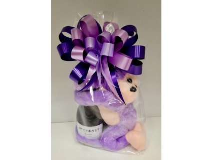 Stylový dárkový balíček pro ženy s jemně fialovým plyšákem a vínem JP. Chenet Merlot – dokonalá kombinace elegance, chuti a úsměvu. 💜🍷