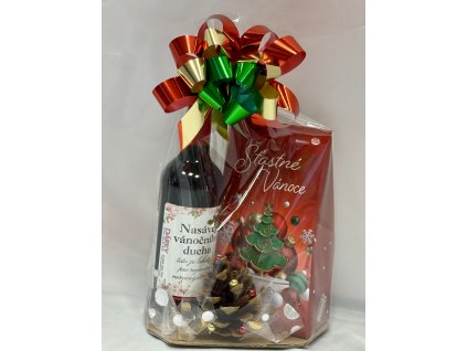 Originální vánoční dárek s humorem i chutí svátků 🍷✨Obsahuje víno s etiketou „Nasávej vánočního ducha“ a vánoční pralinky, zabalené do elegantního dárkového balení se sváteční...