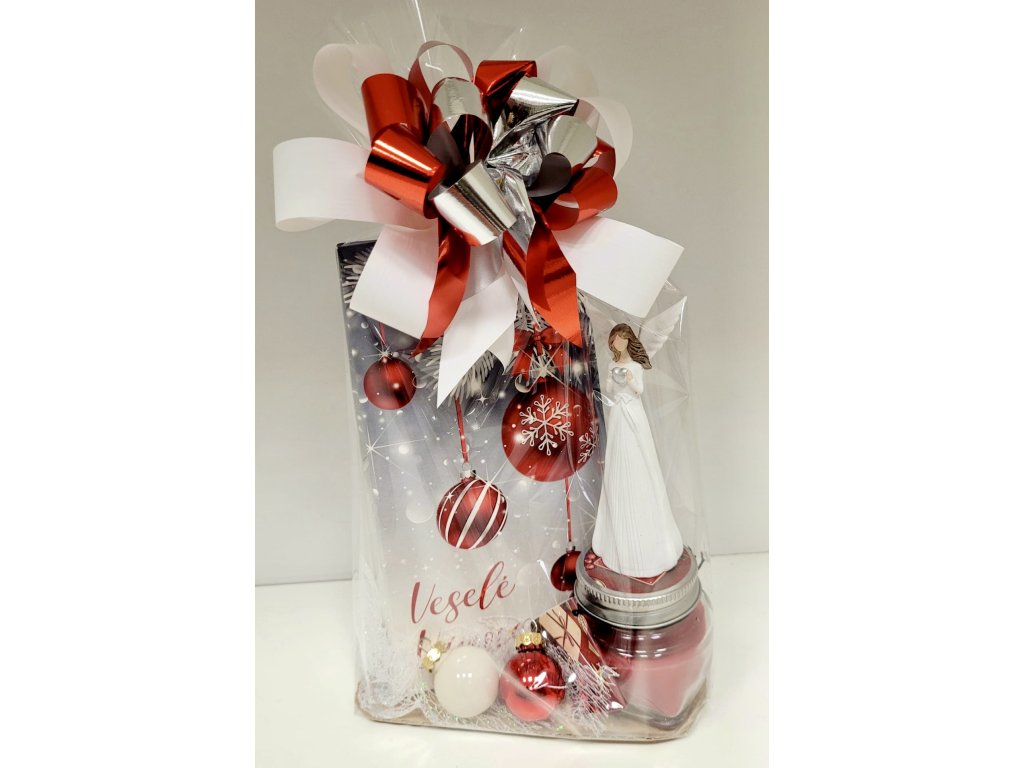 Vánoční dárkový balíček s andílkem, svíčkou a čokoládou Veselé Vánoce